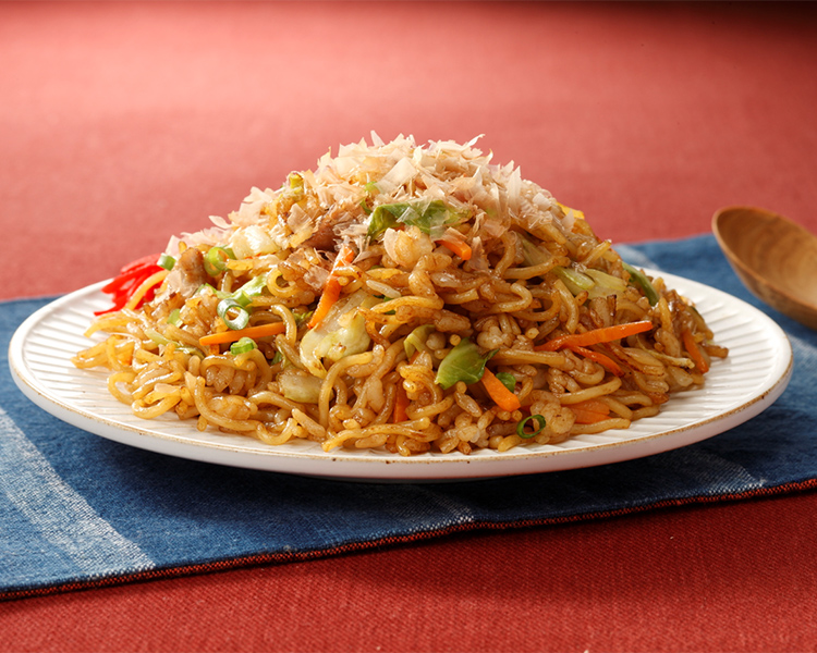 2. Thành phần : Mì Trung Hoa (bột lúa mì(10.32%), dầu đậu tương(0.73%), muối(0.1%)) (sản xuất trong nước), gạo (20.68%)(sản xuất trong nước), rau (bắp cải(3.91%), cà rốt(1.98%), hành lá(1.94%)), sốt kiểu nhật đậm đặc(6.42%), thịt heo(3.19%), dầu thực vật, bột gia vị (cá ngừ), nước tương, shortening, mỡ heo tinh chế, đường, muối, chiết xuất cua, nước mắm, sốt dạng bột, nước cốt gà, gia vị (amino axit), chất tạo màu (caramel-INS:150a, carotenoid-INS:160a), chất làm đặc (tinh hồ chế biến, chất làm đặc polysacarit), nước tro tàu kansui, oligosacarit vòng, chất tạo chua, chất tạo ngọt(stevia-INS:960a), hương liệu tổng hợp.(một phần có chứa cua, lúa mì, thành phần sữa, vừng, đậu tương, thịt gà, thịt heo, táo).